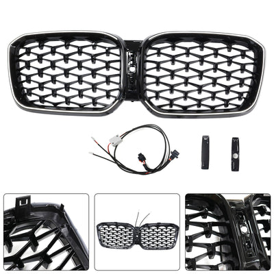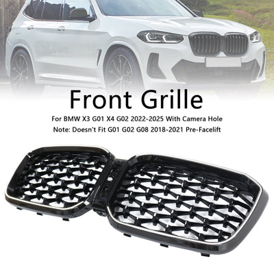 Diamond Glossy Black Front Bumper Kidney Grille Fit BMW X3 G01 X4 G02 2022-2025