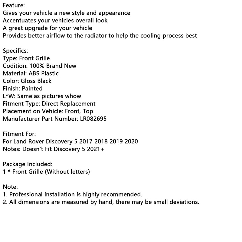 Dynamic Style Front Grille Fit for Land Rover Discovery 5 L462 2017-2020 Black