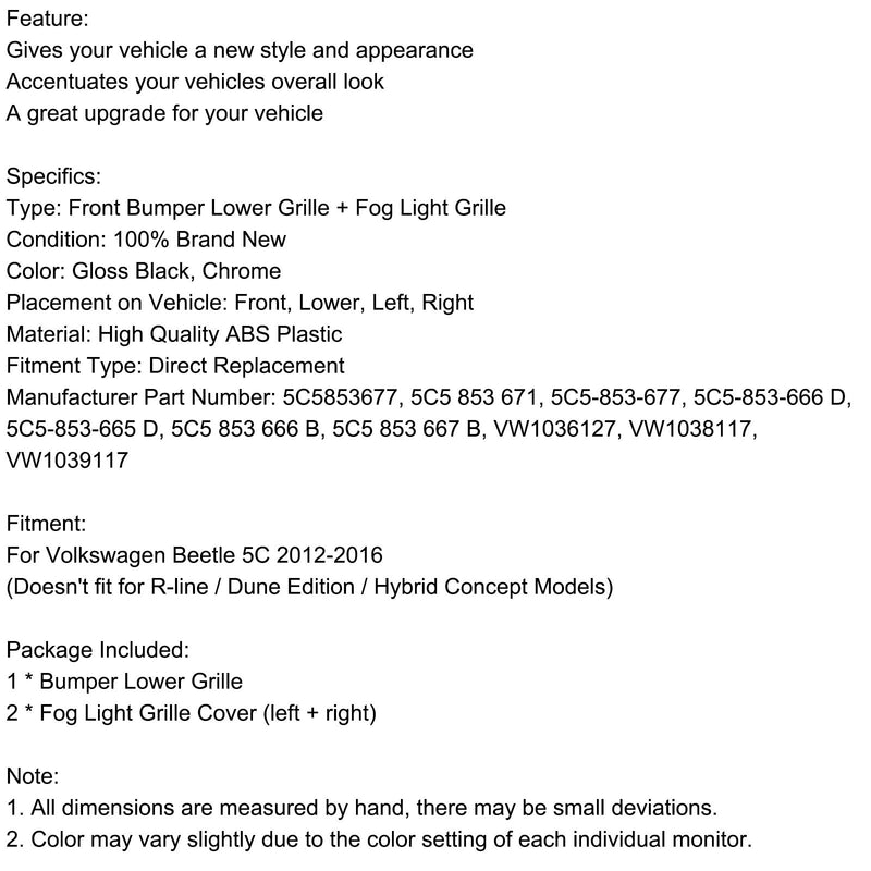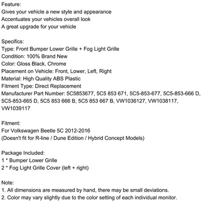 Front Bumper Lower Grille + Fog Light Grill Fit for VW Beetle W/ 2012-2016 Chrome