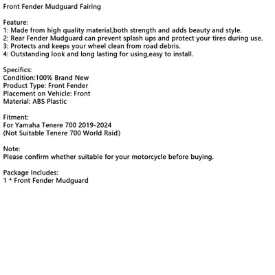 Front Fender Mudguard Fairing For Yamaha Tenere 700 2019-2024