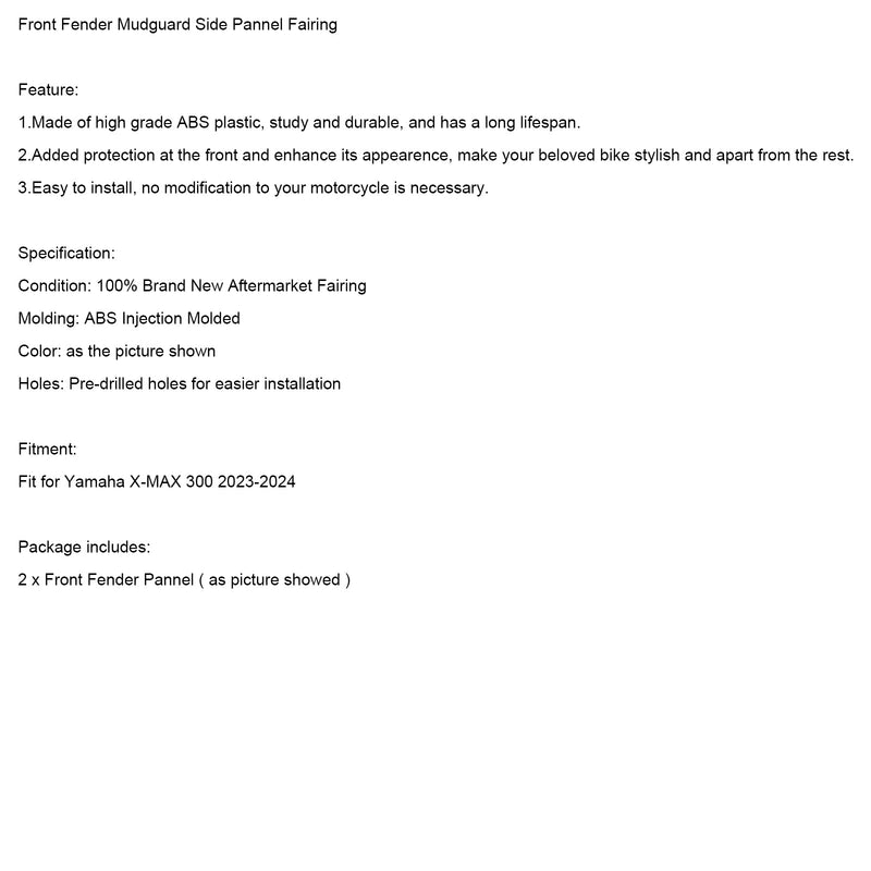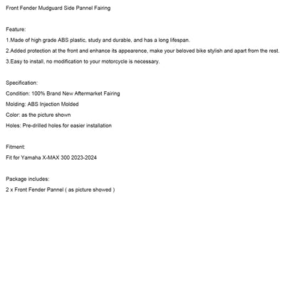 Front Fender Mudguard Side Pannel Fairing Fit for 2023-2024 Yamaha X-MAX 300 XMAX300