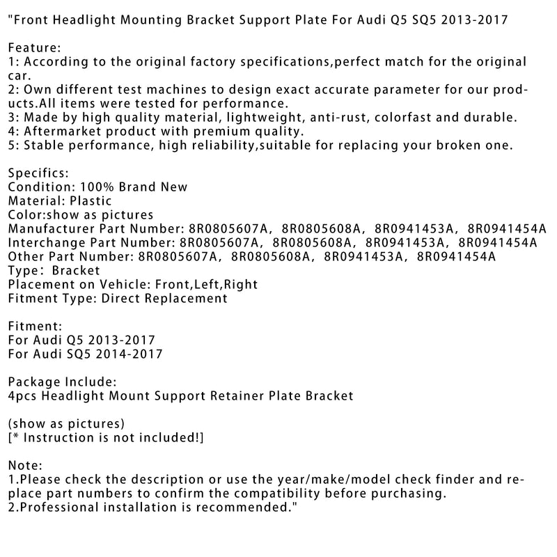 Front Headlight Mounting Bracket Support Plate Fit For Audi Q5 SQ5 2013-2017