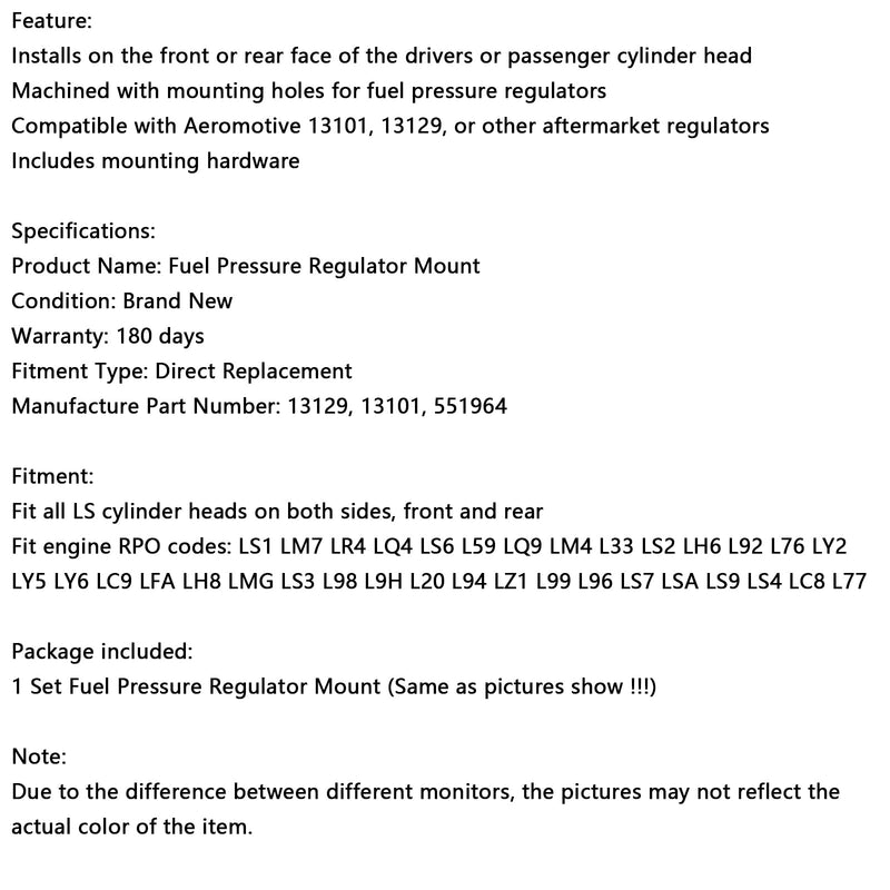 1 Set Fuel Pressure Regulator Mount (Same as pictures show !!!)