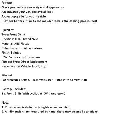 1990-2018 Mercedes Benz G-Class W463 With Camera Hole Gloss Black Front Bumper Grill Grille