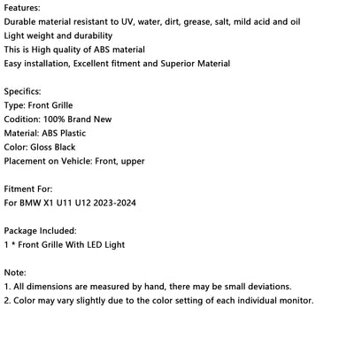 Gloss Black Front Bumper Kidney Grill Grille Fit BMW X1 U11 U12 2023-2024