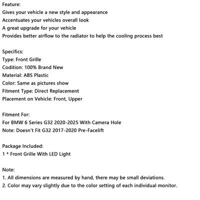 Glossy Black Front Kidney Grill Grille Fit BMW 6 Series G32 2020-2025