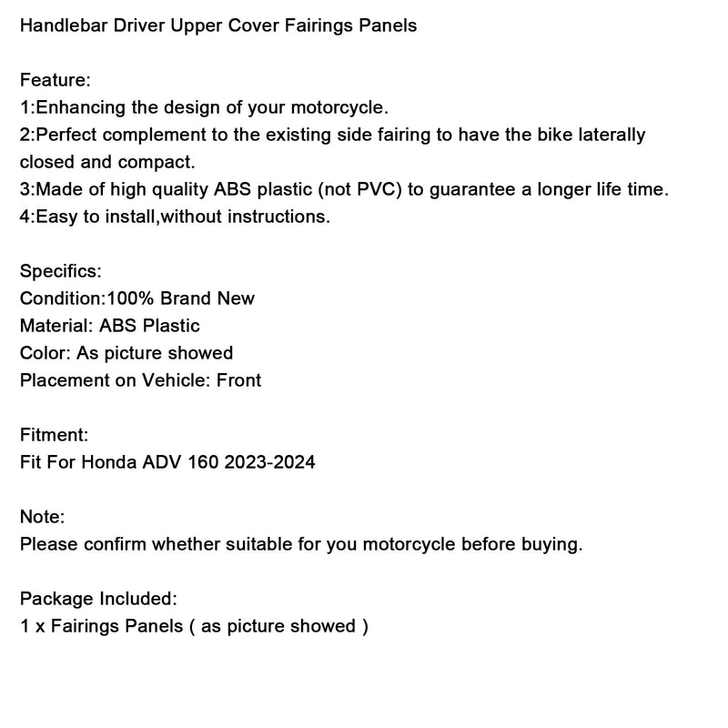 Handlebar Driver Upper Cover Fairings Panels Fit for Honda ADV 160 2023-2024