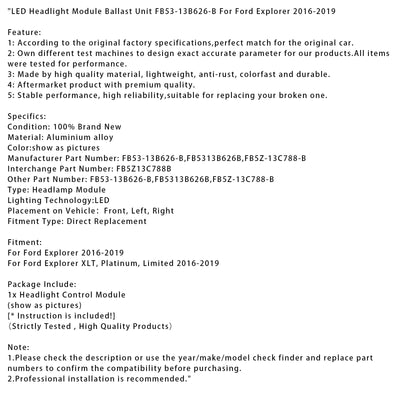 LED Headlight Module Ballast Unit FB53-13B626-B For Ford Explorer 2016-2019