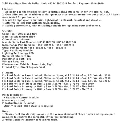 LED Headlight Module Ballast Unit HB53-13B626-B For Ford Explorer 2016-2019