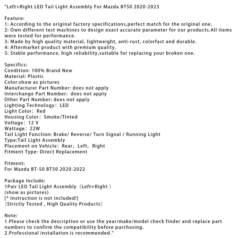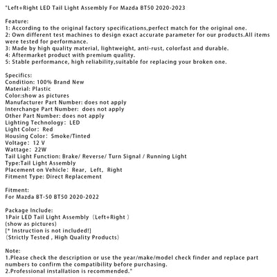 2020-2023 Mazda BT50 Left+Right LED Tail Light Assembly