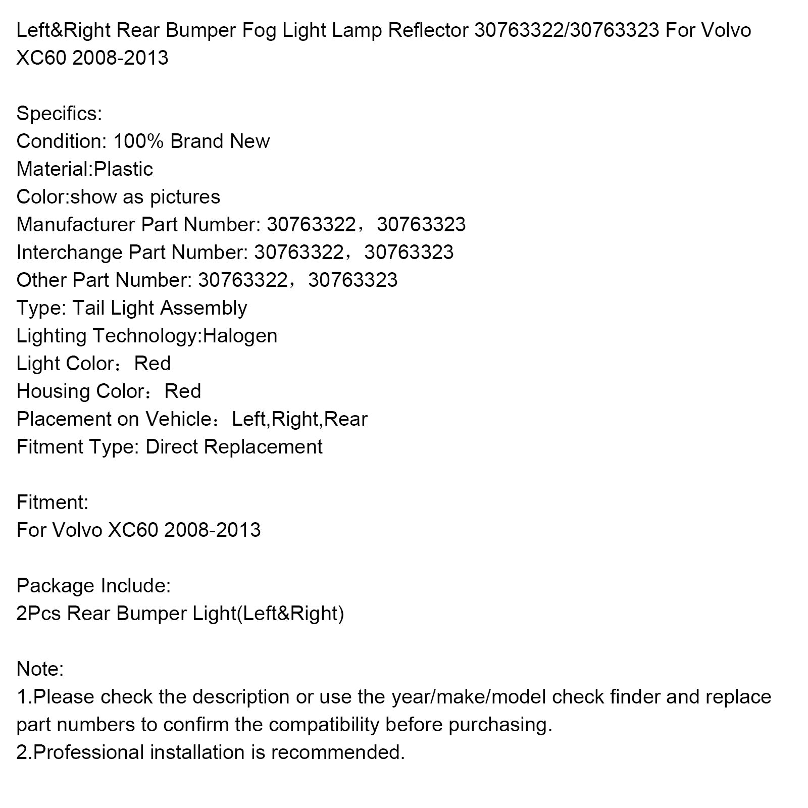 2008-2013 Volvo XC60 Left&Right Rear Bumper Fog Light Lamp Reflector