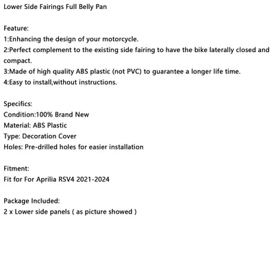 Lower Side Fairings Full Belly Pan Plate Cover Fit For Aprilia RSV4 2021-2024