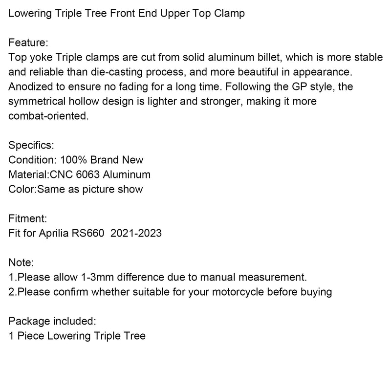 Lowering Triple Tree Front End Upper Top Clamp Fit for 2021-2023 Aprilia RS660