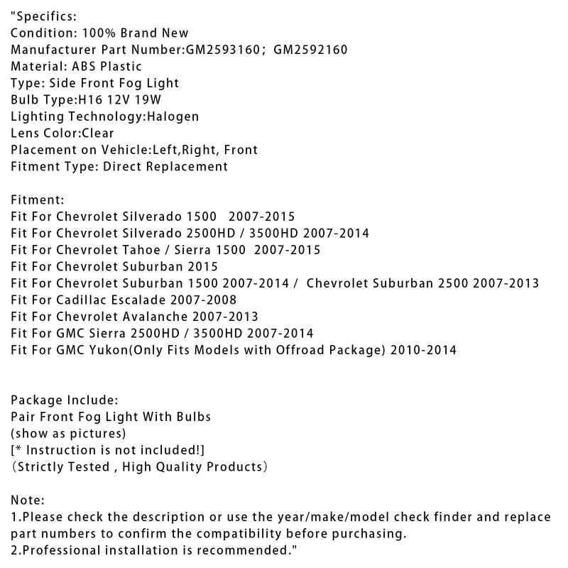 Pair Front Fog Light Lamps With Bulbs For Chevy Silverado 2007-2013 Clear Lens