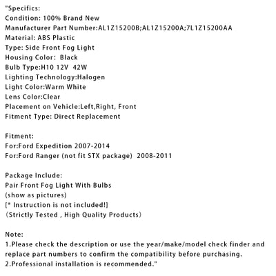 Pair Front Fog Light Lamps With Bulbs For Ford Expedition 2007-2014 Clear Lens