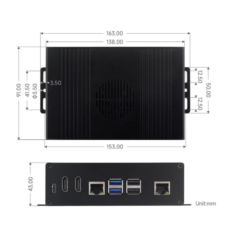 Raspberry Pai 5th Generation Multi-Function Extension All-in-One PCIE Extension Plate Aluminum Alloy Shell Double HDMI Dual 4K Output