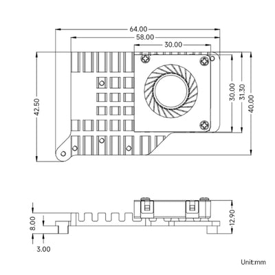 Mini and easy to integrate, designed for Raspberry Pi 5, matching the size and positioning of Raspberry Pi 5, radial blower and aluminum heat sink to accelerate heat dissipation