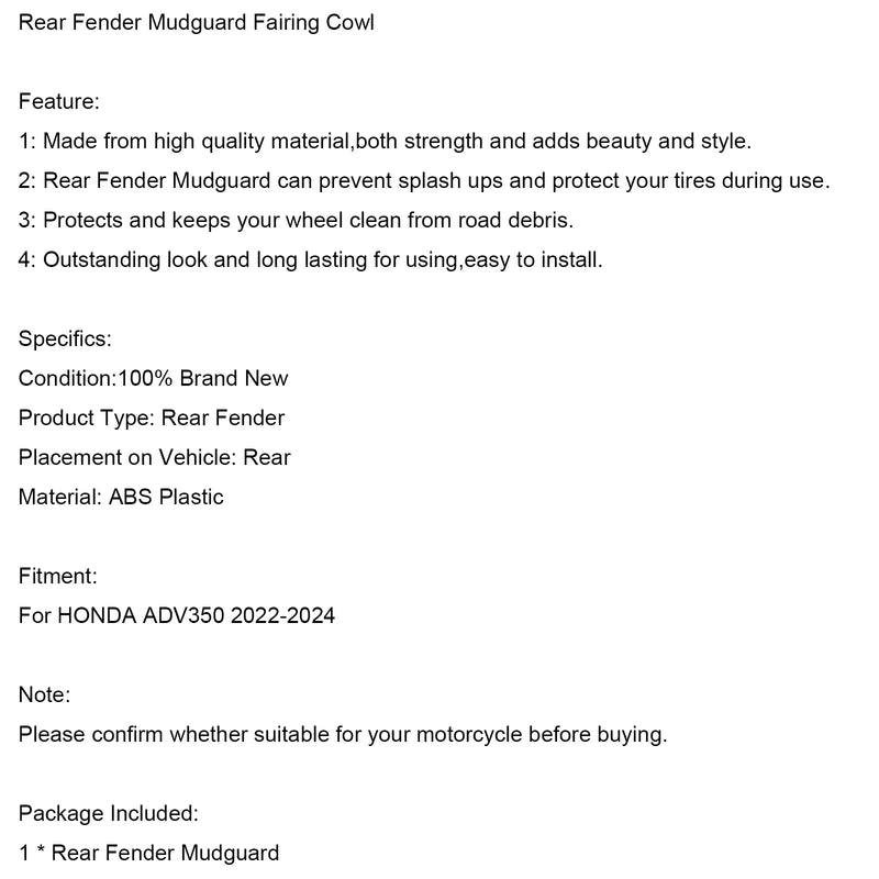 Rear Fender Mudguard Fairing Cowl Fit For HONDA ADV350 2022-2024