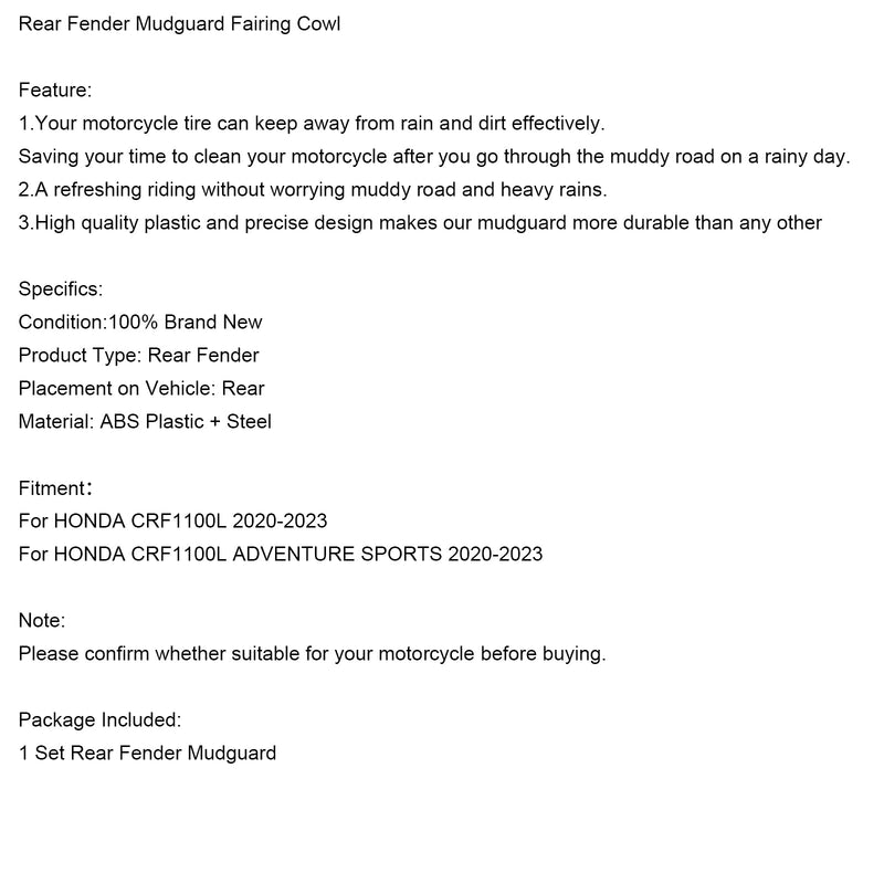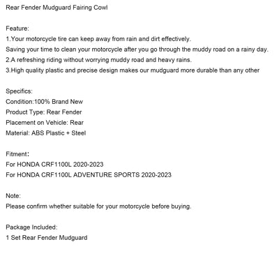 Rear Fender Mudguard Fairing Fit For HONDA CRF1100L 2020-2023 CRF1100L ADV Sports