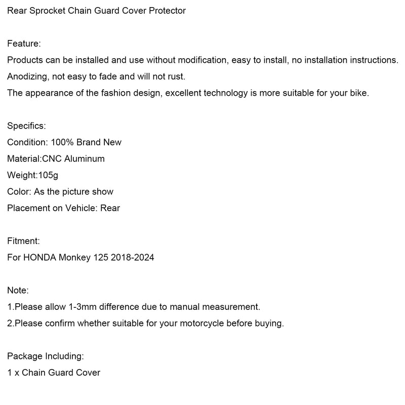 Rear Sprocket Chain Guard Cover Protector Fit For HONDA Monkey 125 2018-2024