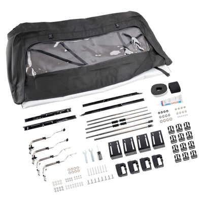 When not in use, the top is stored in the convenient built-in storage system along with the side panels.