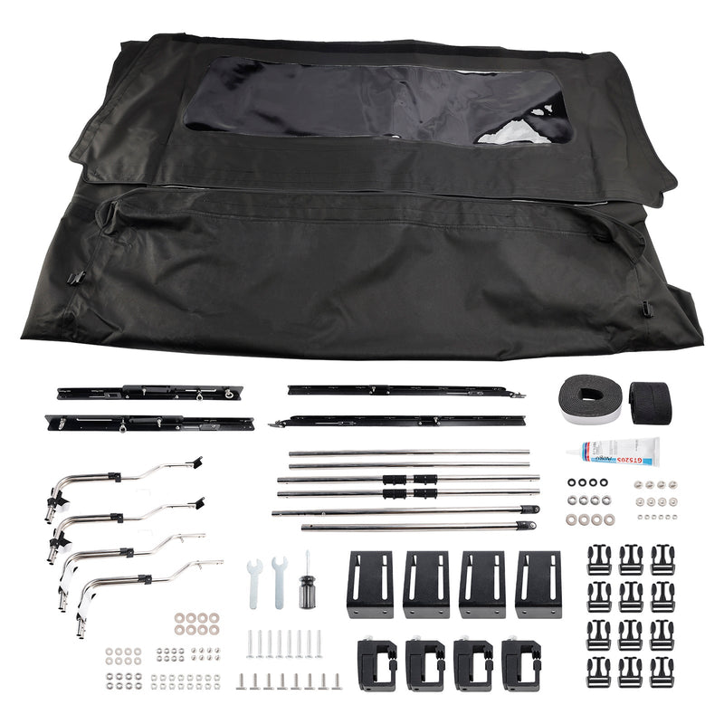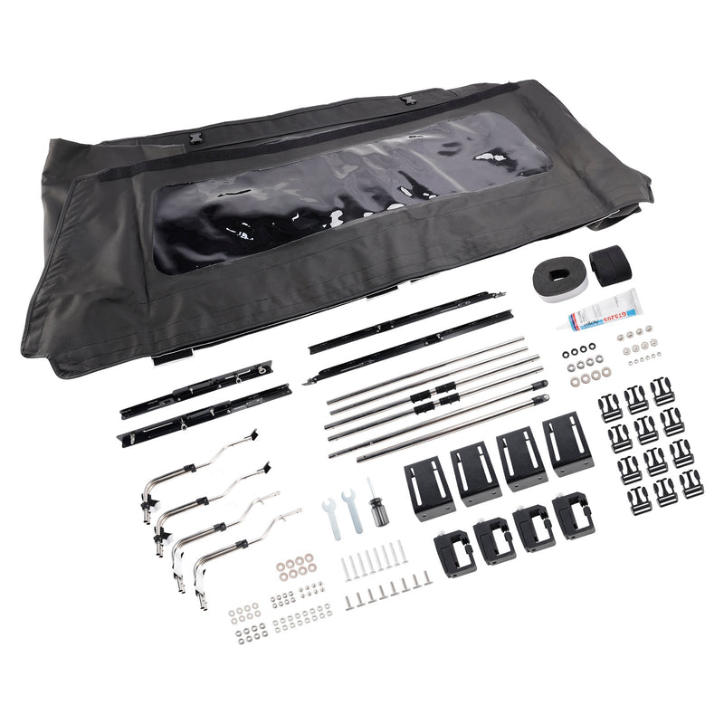 When not in use, the top is stored in the convenient built-in storage system along with the side panels.