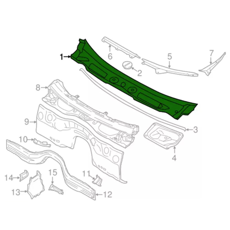 09/2008-06/2015 BMW X1 E84 Windshield Wiper Vent Cowl Grille Panel 51712990023