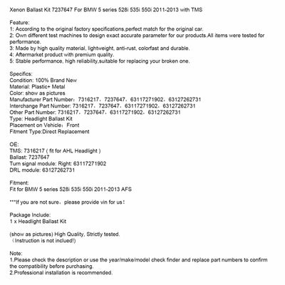 Xenon Ballast Kit 7237647 Fit For BMW 5 series 528i 535i 550i 2011-2013 with TMS
