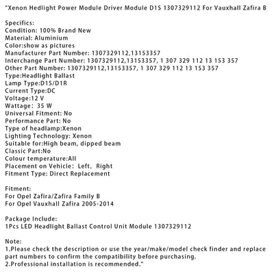 Opel Zafira/Zafira Family B Xenon Hedlight Power Module Driver Module D1S 1307329112