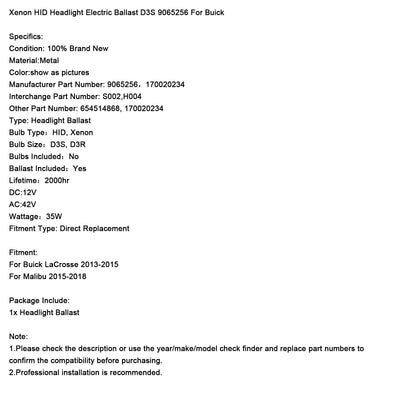 Xenon HID Headlight Electric Ballast D3S 9065258 For Buick