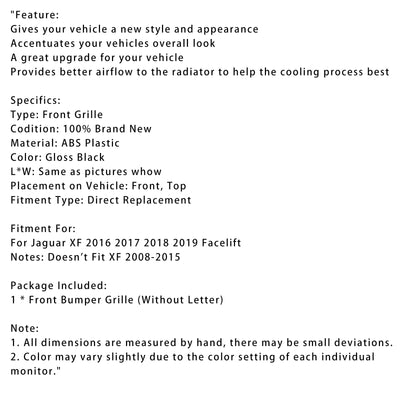 2016-2019 Jaguar XF XF-R Style Front Bumper Grill Grille Gloss Black