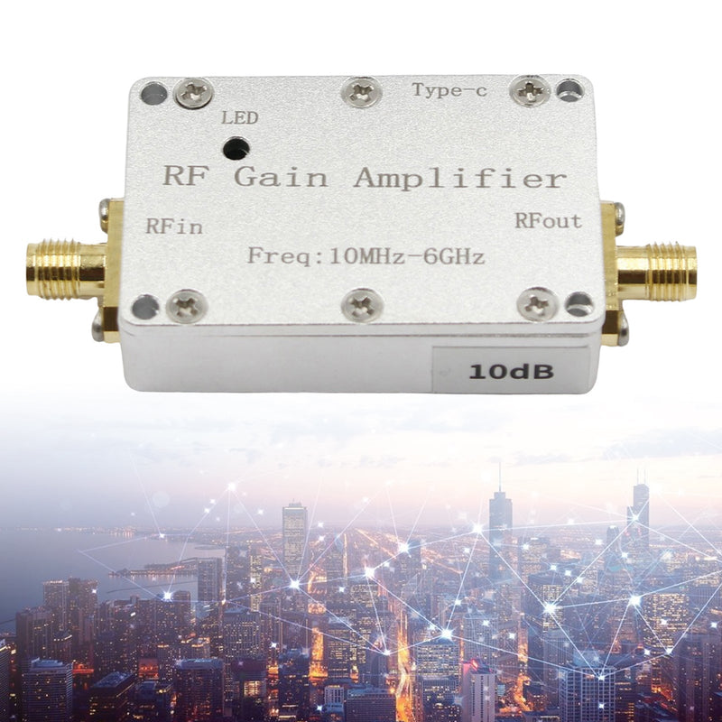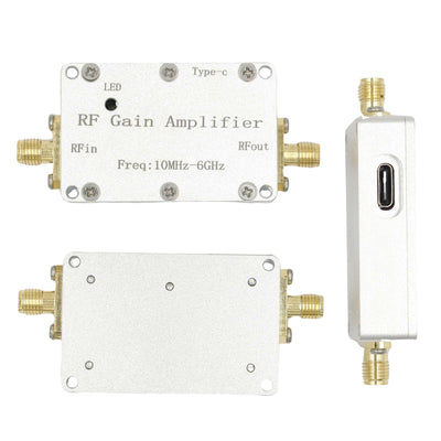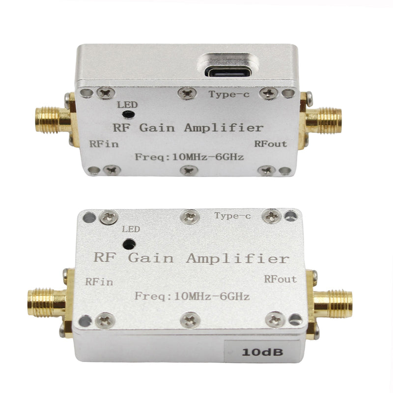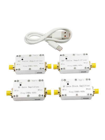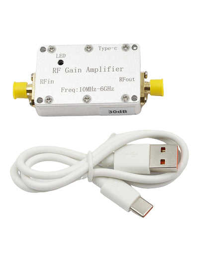 This amplifier module is used for signal gain promotion and small signal amplification in various radio transmitters and receivers. The module covers the 10M-6GHz0M-6GHz broadband frequency range, covers 433M, 1.2G, 1.5G, 2.4G, 5.8G and other typical application frequencies, and has a high flatness gain characteristic of 10dB 20dB 30dB 40dB. It is used in transmitter signal gain promotion and receiver systems. The module uses a Type-c interface +5V power supply and has a power working indicator light.