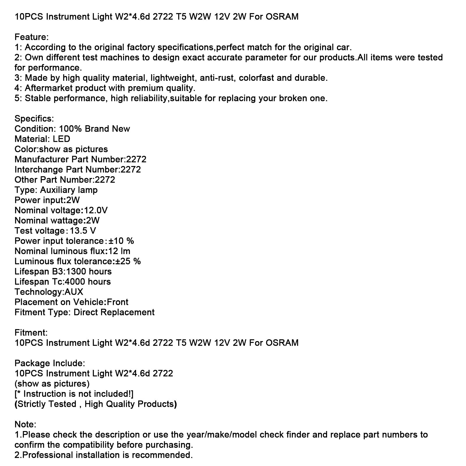 10PCS Instrument Light W2*4.6d 2722 T5 W2W 12V 2W For OSRAM