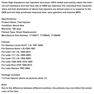 1PCS Fuel Injector 17109450 Fit Daewoo Lanos 1997-2004 Fit Nexia 1995-1997