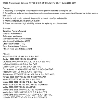 2006-2011 Lucerne V6 3.8L 3.9L 4 Spd FWD 4T65E Transmission Solenoid Kit TCC 2 Shift EPC Switch