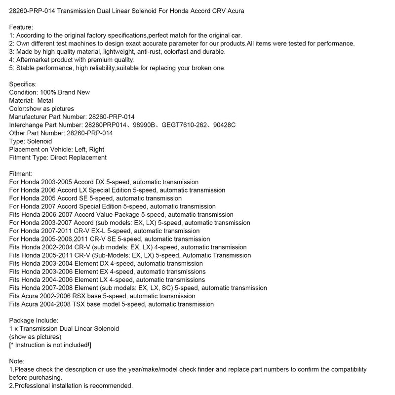 28260-PRP-014 Transmission Dual Linear Solenoid Fit For Honda Accord CRV Acura