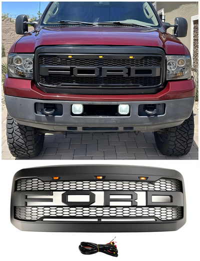 2005 2006 2007 Ford F250 F350 Super Duty W/ LED Front Bumper Grill Grille