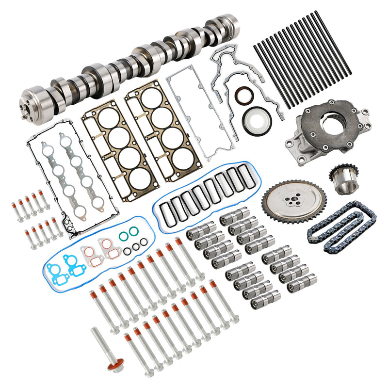 Camshaft + Valve Lifter + Push Rod: Camshaft + Screw Set + Spacer Set with 16 Valve Lifters and 16 Valve Lifters+16 putters+Oil Pump+Timing chain