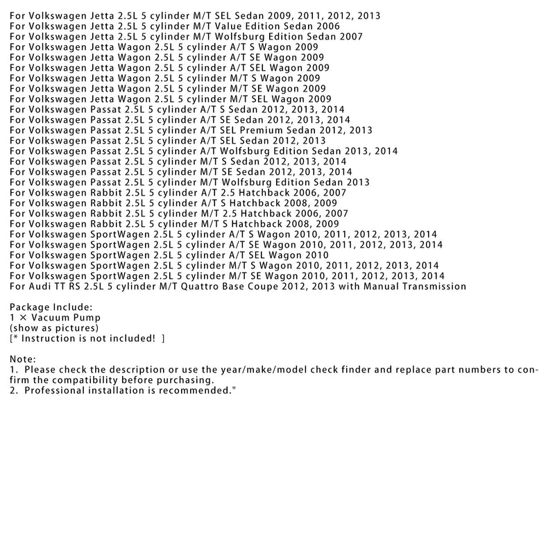 For Volkswagen Jetta 2.5L 5 cylinder A/T SEL Sedan 2008, 2009, 2010, 2011, 2012, 2013