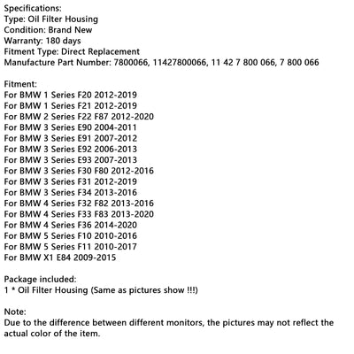 Oil Filter Housing 7800066 Fit BMW F20 F21 2011-2019 F22 F87 2012-2020 E90