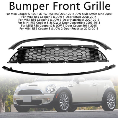 3PCS Gloss Black Front Grill Grille Fit for Mini R55 R56 R57 R58 R59 Cooper S & JCW