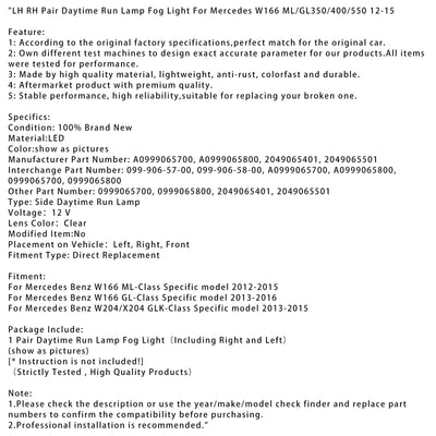 LH RH Pair Daytime Run Lamp Fog Light For Mercedes W166 ML/GL350/400/550 12-15