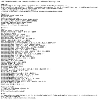 2012-2014 BUICK ENCORE 1.4L 7PCS 6T40E 6T45E 6T30E Transmission Solenoid Kit