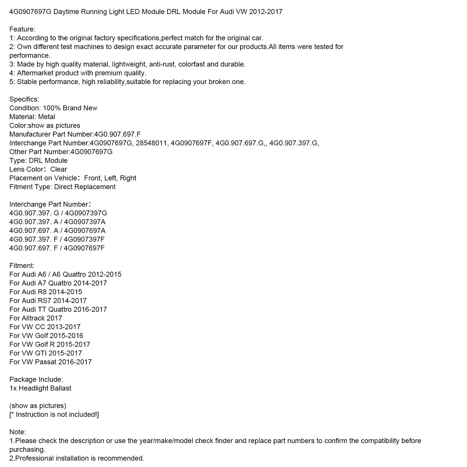 4G0907697G Daytime Running Light LED Module DRL Module Fit For Audi VW 2012-2017