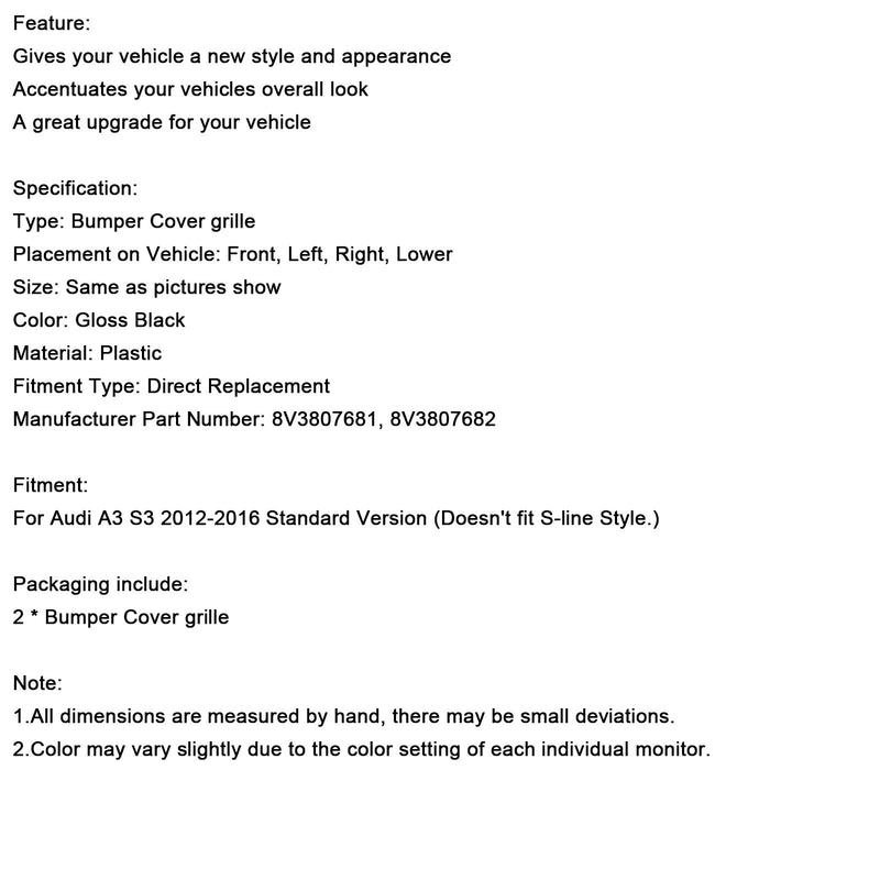 For Audi A3 S3 2012-2016 Standard Version (Doesn't fit S-line Style.)