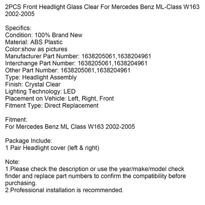 2002-2005 Mercedes Benz ML-Class W163 2PCS Front Headlight Glass Clear