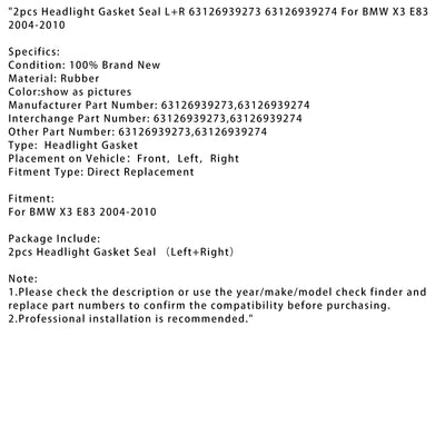 2pcs Headlight Gasket Seal L+R 63126939273 63126939274 For BMW X3 E83 2004-2010