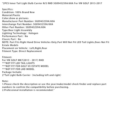 2013-2017 VW GOLF 2PCS Inner Tail Light Bulb Carrier N/S RHD 5G0945259A/60A