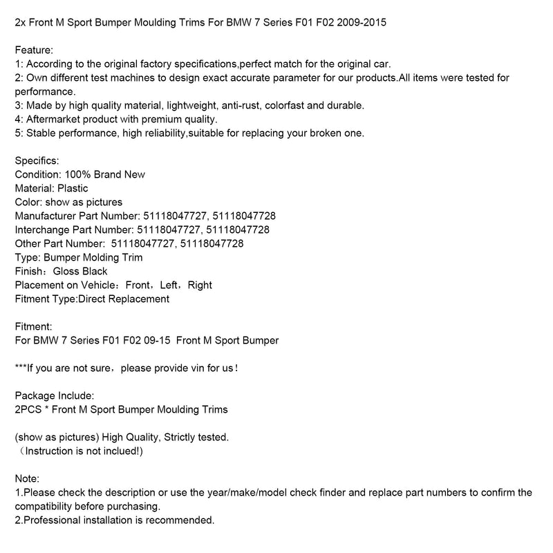 2x Front M Sport Bumper Moulding Trims Fit for BMW 7 Series F01 F02 2009-2015
