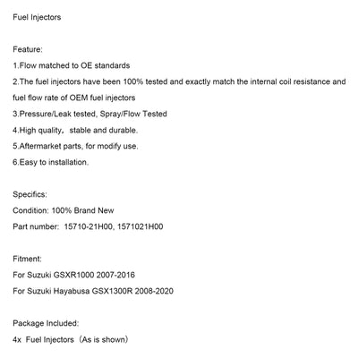 4PCS 15710-21H00 Fuel Injectors 1571021H00 Fit For Suzuki GSXR1000 07-16 GSX1300R 08-20